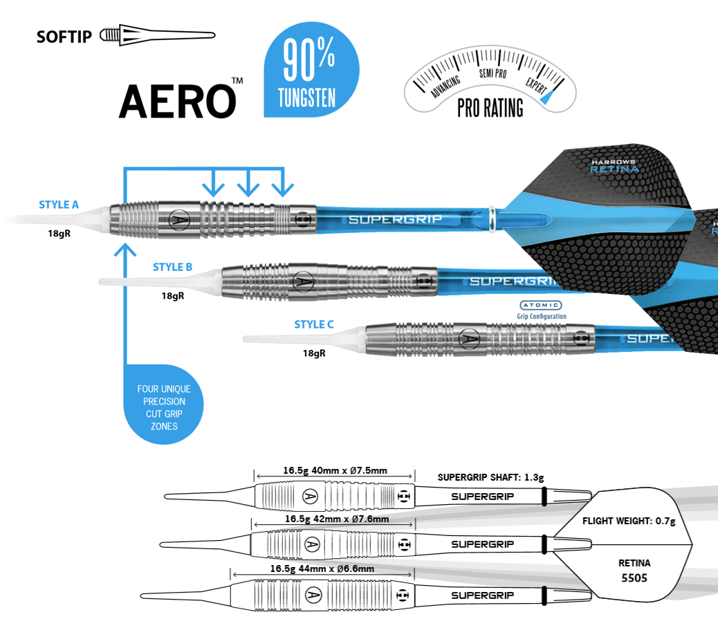 Rzutki posiadają końcówki Softip i są przeznaczone do gry na tarczach elektronicznych.